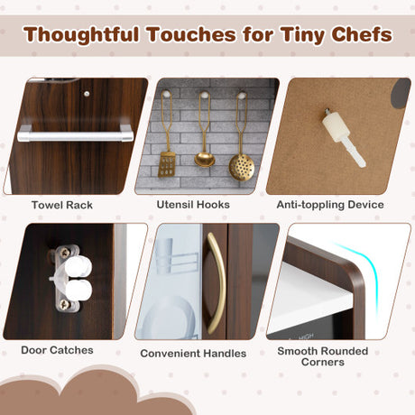 Toddler Pretend Play Kitchen for Boys and Girls 3-6 Years Old-Brown
