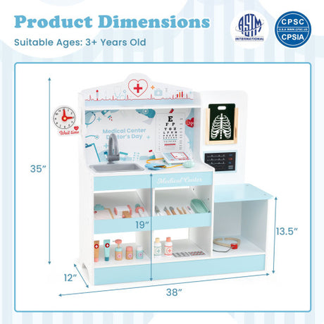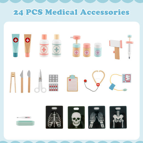Wooden Doctor Playset with Stethoscope for Toddlers over 3 Years Old-Blue