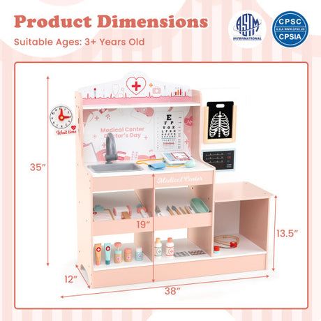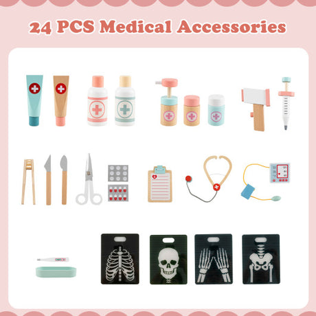 Wooden Doctor Playset with Stethoscope for Toddlers over 3 Years Old-Pink