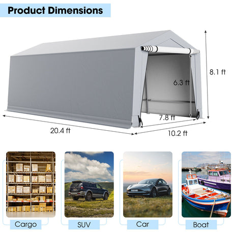 10 x 20 Feet Portable Garage Tent Carport with Galvanized Steel Frame-with Sidewall