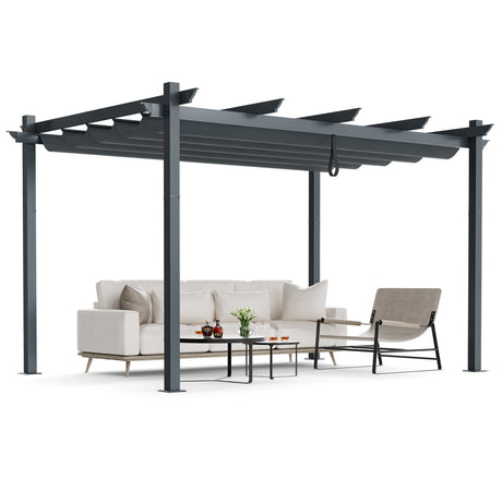 10 x 13 Feet Outdoor Aluminum Retractable Pergola Canopy Shelter-Gray by DirectDeals