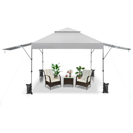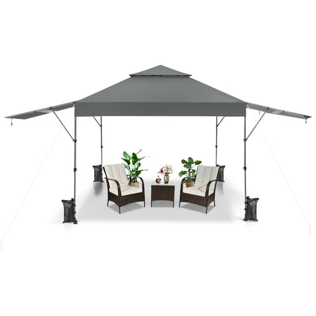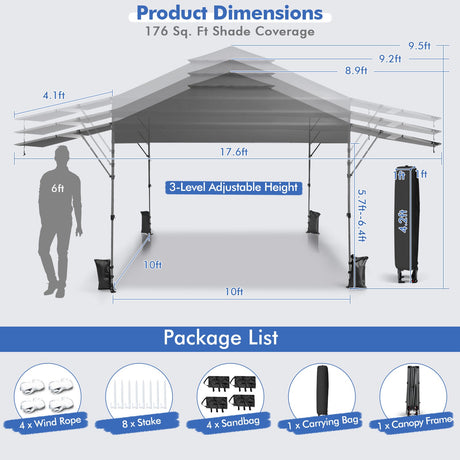 10 x 17.6 Feet Outdoor Instant Pop-up Canopy Tent with Dual Half Awnings-Gray