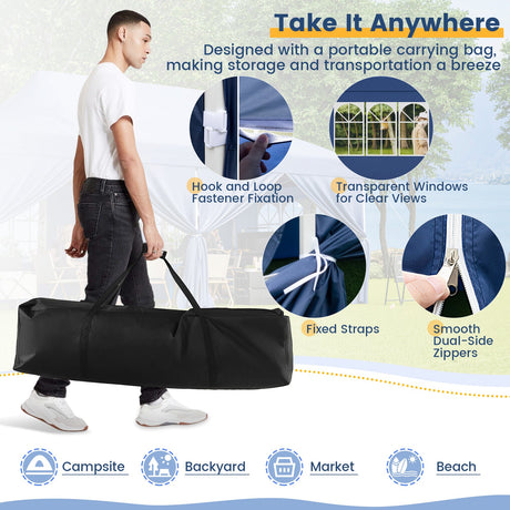 10 x 20 FT Pop up Canopy with 6 Sidewalls and Windows and Carrying Bag for Party Wedding Picnic-Blue