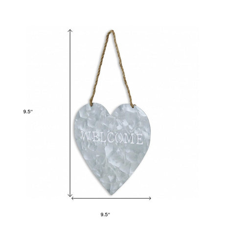 10" Gray Galvanized Metal Heart Shaped Welcome Wall Decor