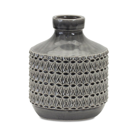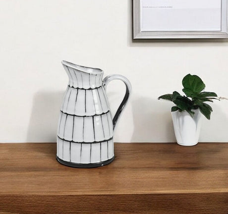 10" Gray And Ivory Geometric Cylinder Ceramic Table Vase
