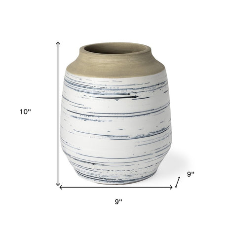 10" Blue Sand And White Abstract Cylinder Ceramic Table Vase