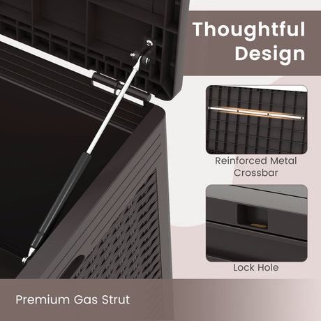 100 Gallon Large Deck Box with Lockable Lid for Patio-Black and Brown