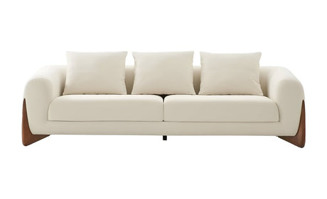 100" Cream Fabric Sofa With Wood Brown Legs