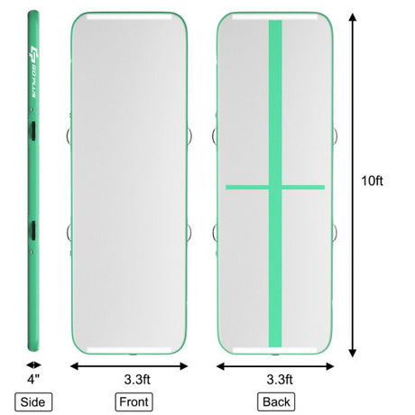 10 Feet Inflatable Gymnastics Tumbling Mat with Pump-Green
