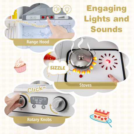Wooden Kids Kitchen Playset with Chalkboard Ice Maker Sink Lighted Microwave-White