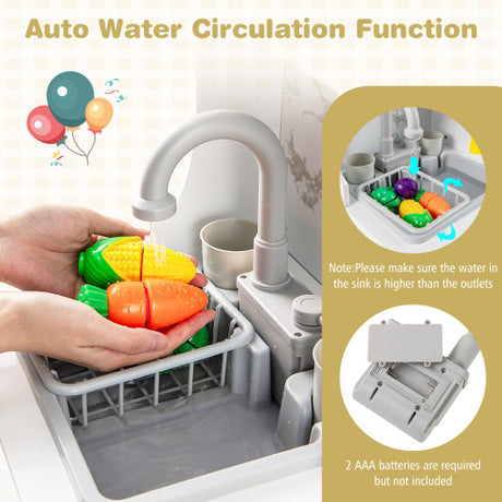 Kids Kitchen Playset with Cooking Accessories and Toy Cuttable Veggies-White