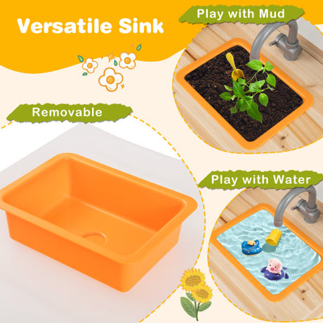 Mud Kitchen Fir Wood Play Kitchen with 4 Panting Pots Faucet Removable Sink-Natural