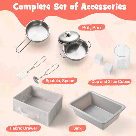 Wooden Kitchen Playset with Ice Maker and Sounds for Ages 3+-Pink