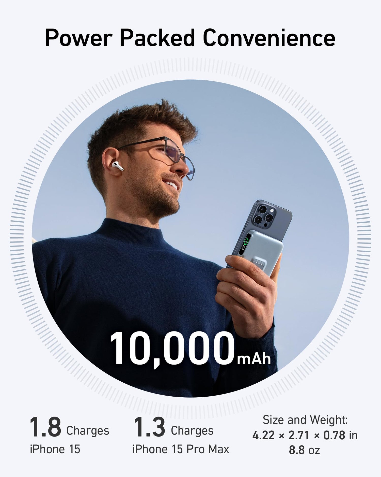 - Power Up and Prop Up: With a powerful 10,000mAh, secure 1.8 charges for your iPhone 15 Pro and enjoy hands-free viewing with the built-in stand.