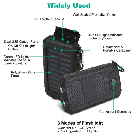 10000mAh Solar Power Bank External Battery Pack Dual USB Ports by DirectDeals