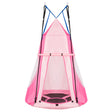 —� Safe and Comfortable Swing: Made of sturdy galvanized pipe with foam padding and heavy-duty PP jumping cloth and oxford fabric this hanging swing tent has a strong load-bearing capacity of up to 330 lbs available for kids to jump freely and safely. And the 360-degree tent enclosure design reassures its safety and gentle riding.