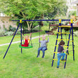 —� 5-In-1 Combo Swing Set: This multifunctional swing set includes 2 swing seat 1 basketball hoop 1 climbing ladder and 1 climbing net bringing an ultimate fun combination for your kids. What's more the height of 2 swings can be easily adjusted to meet kids' different needs.