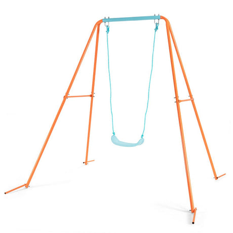 Outdoor Kids Swing Set with Heavy-Duty Metal A-Frame and Ground Stakes-Orange
