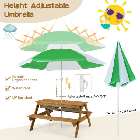 3-in-1 Kids Outdoor Picnic Water Sand Table with Umbrella Play Boxes
