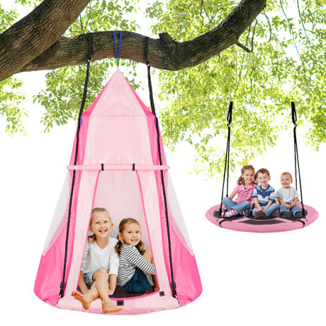 2-in-1 40 Inch Kids Hanging Chair Detachable Swing Tent Set-Pink