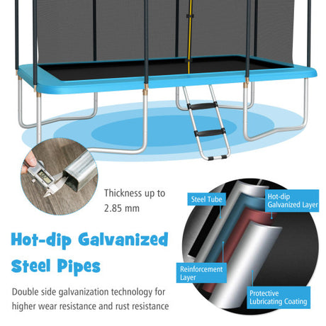 8 x 14 Feet Rectangular Recreational Trampoline with Safety Enclosure Net and Ladder-Blue