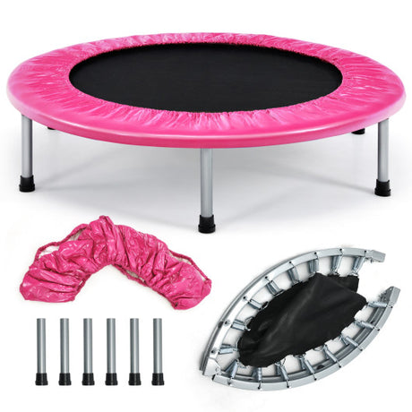 38 Inch Mini Folding Trampoline Portable Leisure Fitness Backboard-Pink