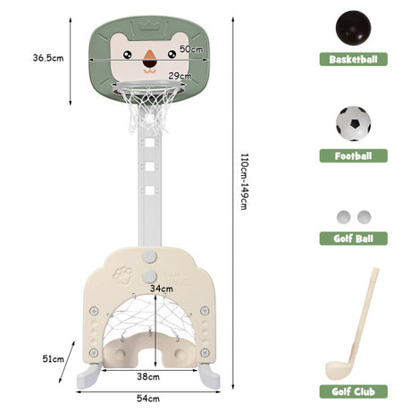 3-in-1 Adjustable Kids Basketball Hoop Sports Set-Green