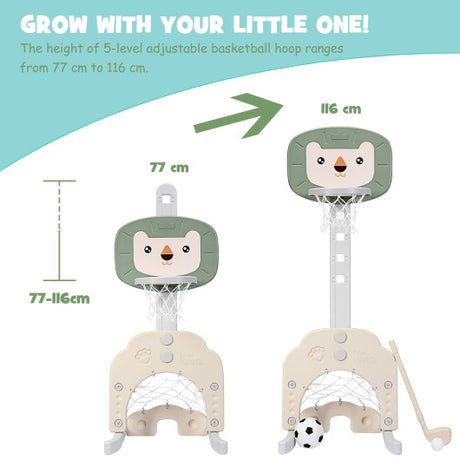 3-in-1 Kids Basketball Hoop Set with Balls-Green