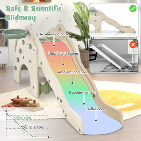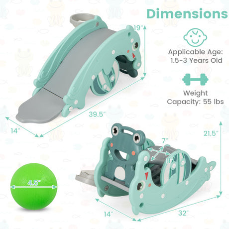 3-in-1 Kids Slide Rocking Horse Set Convertible Toddler Slide with Basketball Hoop-Green