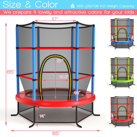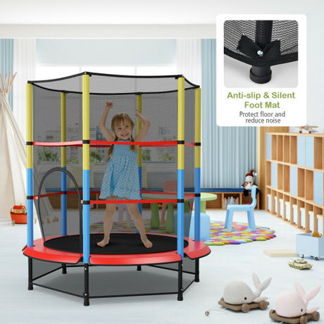 55 Inches Kids Trampoline Recreational Bounce Jumper with Safety Enclosure Net