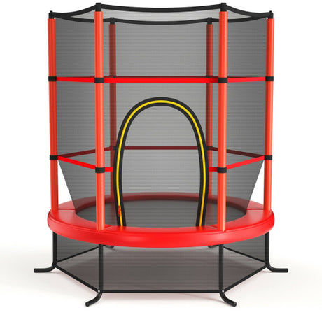 55 Inch Kids Recreational Trampoline Bouncing Jumping Mat with Enclosure Net-Red