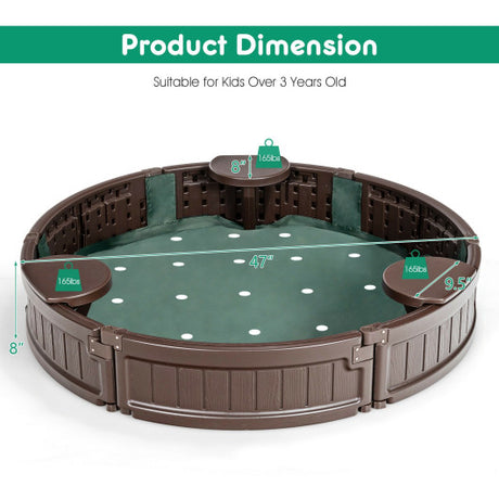 Sandbox with Built-in Corner Seat and Bottom Liner-Brown
