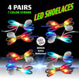 |4 Pairs| 7 Color Strobe LED Light Up Shoe Laces Glow in the Dark White Tie Shoelaces for Sneakers, Skates, 45 inch