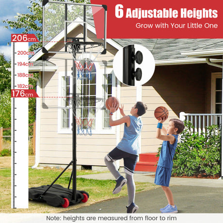 5.8-6.8 FT Basketball Hoop Height Adjustable Basketball System with Wheels and Fillable Base