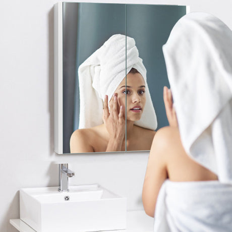 Bathroom Mirror Cabinet Wall Mounted Adjustable Shelf Medicine Storage-White