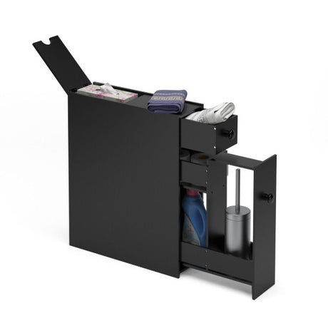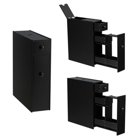 Linen Tower Bathroom Storage Cabinet Tall Slim Side Organizer with Shelf-Black