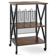 3-Tier Record Player Stand with Charging Station and Adjustable Shelf-Coffee
