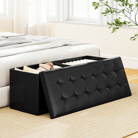43 Inches Folding Storage Ottoman Bench Foot Rest Stool End of Bed Bench-Black