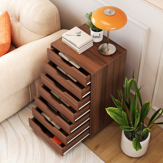 7-Drawer Chest Wooden Storage Dresser with Lockable Wheels-Walnut
