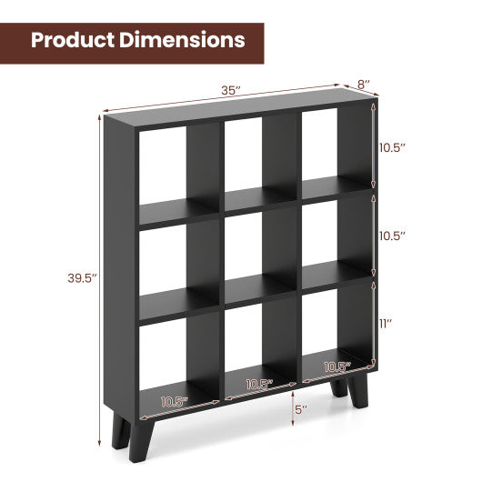 9-Cube Bookcase with 6 Removable Shelves and Raised Support Feet-Black