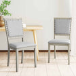 Farmhouse Dining Chair Set of 2 Fabric Upholstered Kitchen Chairs-Grey