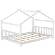 Full Size House Bed Montessori Floor Bed with Headboard-White