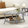 Oval Coffee Table 2-Tier Center Table with Storage Shelf-Gray