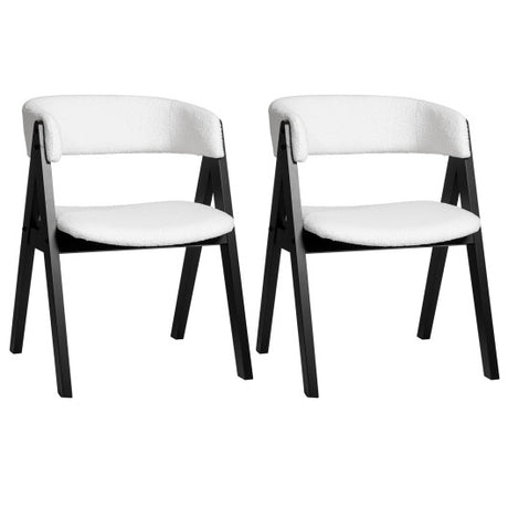 Wooden Dining Chair Set of 2 Mid-Century Modern Sherpa Upholstered Kitchen Dining Room Chairs-Black