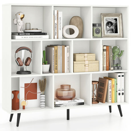 8/10-Cube Bookcase with 5 Tapered Metal Legs-Off White