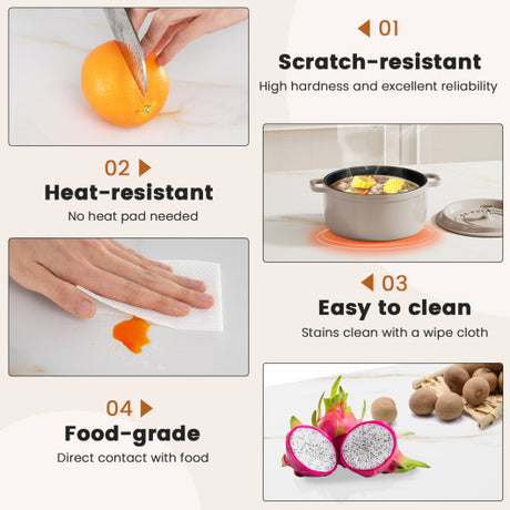 44 Inches Sintered Stone Dining Table with Metal Frame and Faux Marble Tabletop-White