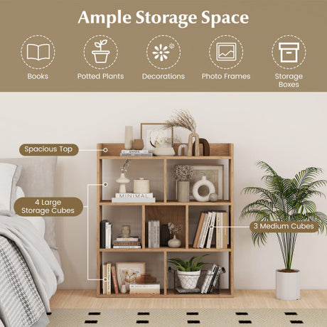 7 Cubes Open-back Bookshelf with Anti-Toppling Devices-Natural