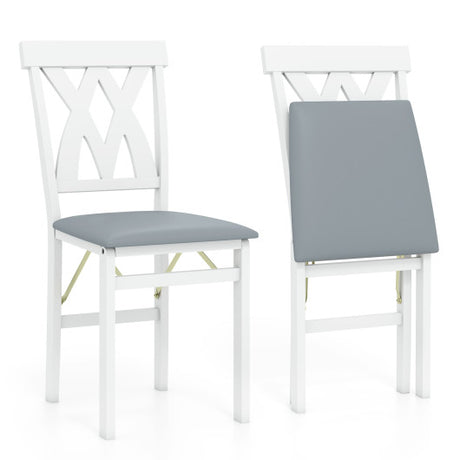 Folding Wooden Dining Chair Set of 2 Faux Leather Upholstered Kitchen Armless Chairs-White