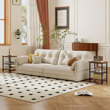 2-Drawer Sofa Side Table with Shelves for Living Room-Natural