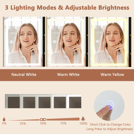 Small Vanity Makeup Dressing Table Set with Cushioned Stool and LED Lighted Mirror-Black